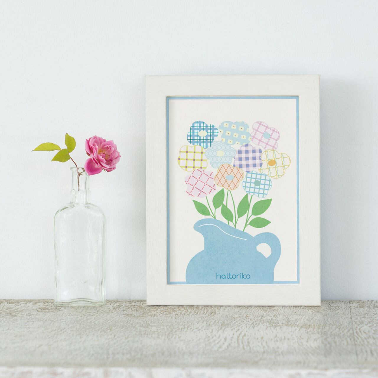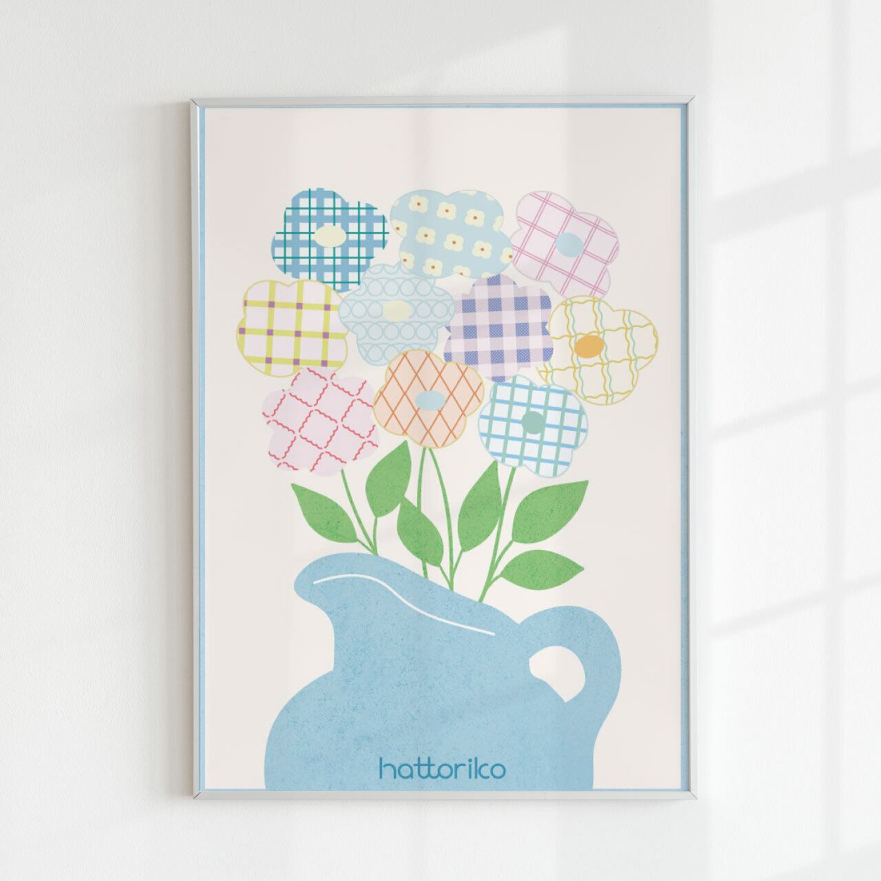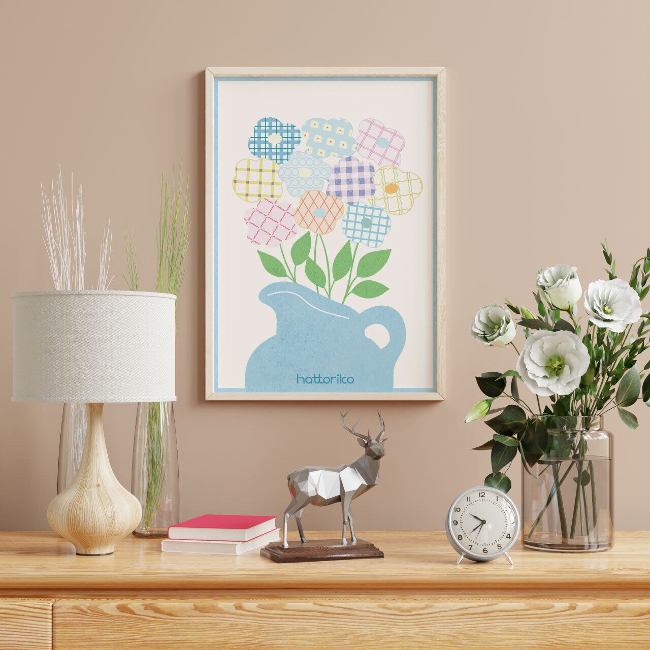 一つ一つ異なるパターンのお花がかわいいアートポスターです。